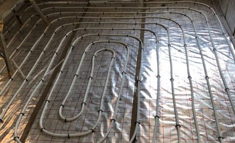 Underfloor heating was installed throughout the ground floor with some radiators to the small upstairs proportion.